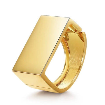 This bold geometric cuff bracelet is where elegance meets edge. Crafted in thick, high-shine 18k gold electroplated brass, it features a sculptural silhouette that adds instant drama to any look. Its chunky design feels strong and elevated, like a piece you’d spot on a runway.